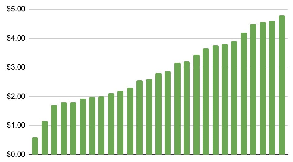 Here is the resulting graph from a research we did for one of our customers. He searched for an item that normally cost him 3.5 USD with his previos supplier. After we conducted a thorough search on alibaba, we got him 50 companies that made the same product. From those, 35 replied and about 27 sent proper quotes. After an analysis, he went for one that offered the exact same item for 1.85 USD which meant a reduction of little more than 47%. Next purchase for 1,000 units, he saved 1,650 USD which increased his profitability significantly.