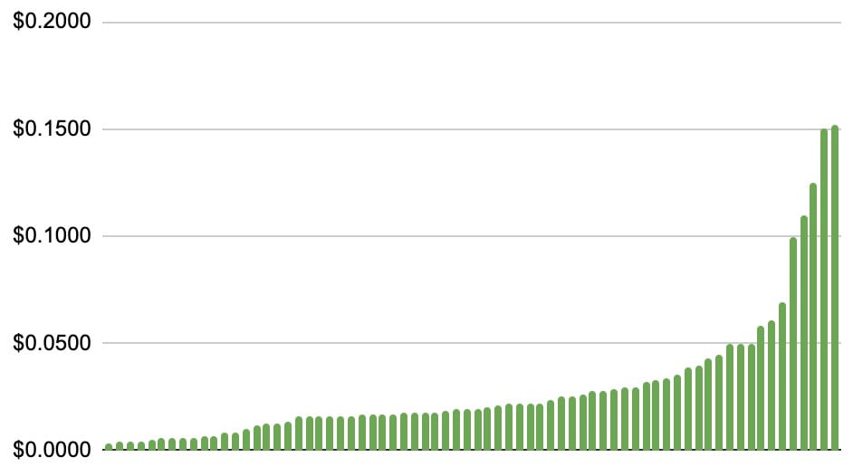 7This other graph is from a search of a standard small component. We found 350 companies that made this component. Around 120 replied, and from those, got around 65 proper quotes. Prices averaged around USD 0.021 per unit. After confirming specs, customer determined several of the offers within the 0.009 – 0.012 range to meet his requirements. After asking some more details he went for a 0.011 USD offer, which meant a production cost of about half from the market average he would have probably gotten if he had contacted just a few suppliers by himself.